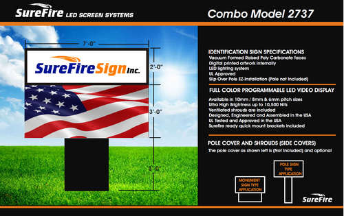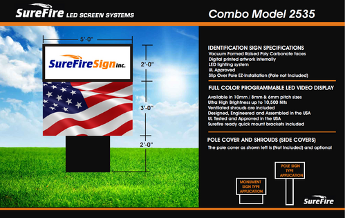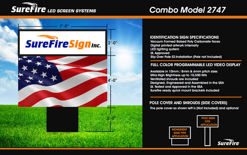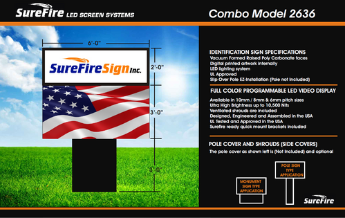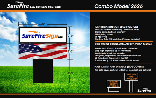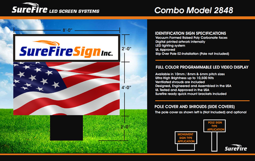 SureFire Signs offers complete sign packages. We can provide custom sign cabinets with polycarbonate vacuumed formed pan faces with custom sized cabinets as well as aluminum extrusion frames offered in 6", 10", and 12" widths. We can also provide pole wraps and shrouds causing a complete package ready for installation,